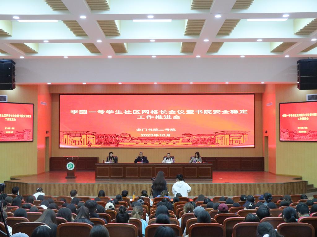 10月19号下午,龙门书院二号院在G1-112召开李园一号学生社区网格长会议暨书院安全稳定工作推进会议。书院党委书记张方方,院长钱越,党委副书记金宜洛、张曼,全体辅导员、李园一号学生社区网格长参加,会议由金宜洛主持。