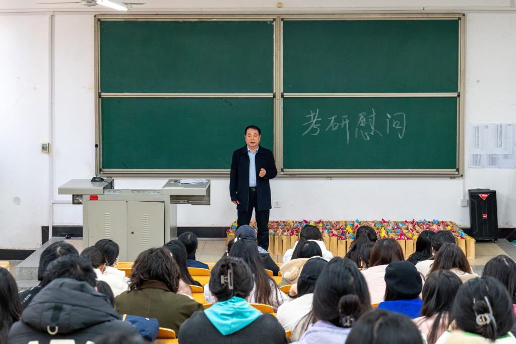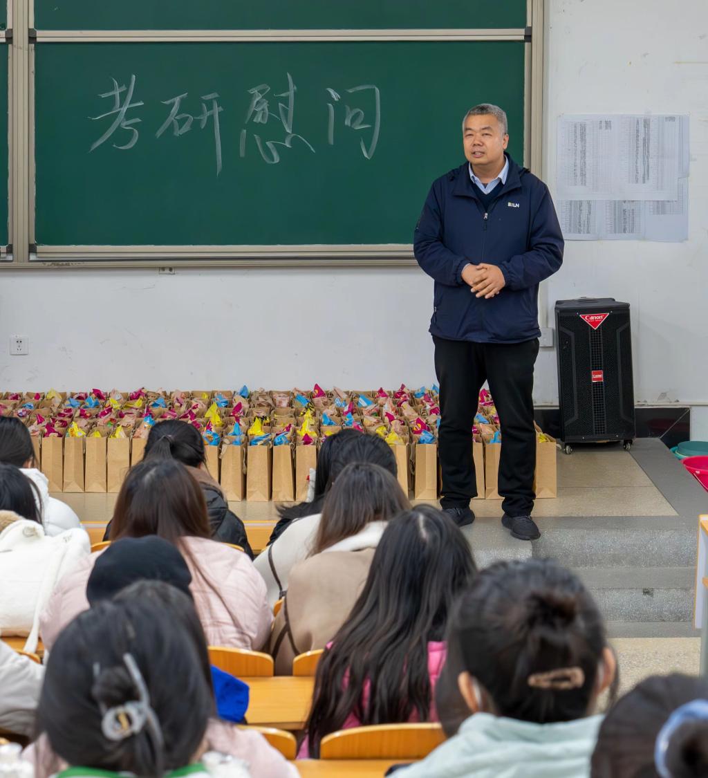 12月8日上午,文学院领导班予以及毕业班辅导员在A8-101教室为2024届考研学子送去关心慰问。