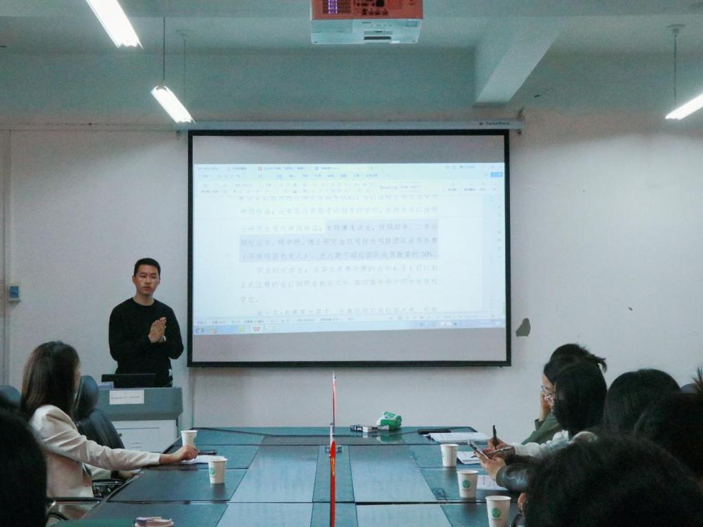 4月30日上午,文学院在A8-428召开“互联网+”赛事学习交流会,新闻与传播学院付帅老师受邀主讲,文学院院长刘恒、副院长李亚、戏剧影视文学专业教师、全体辅导员和部分学生参会。会议由文学院党委副书记张曼主持。
