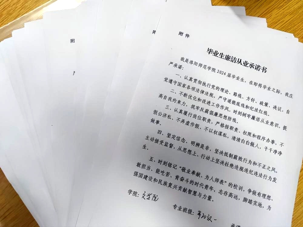 文学院组织2024届毕业生集体学习、签署《毕业生廉洁从业承诺书》,督促毕业生必须要筑牢拒腐防变的思想底线,时刻保持清醒的头脑,自觉接受监督,加强自我约束,率先垂范,筑牢廉洁从业的“防火墙”。