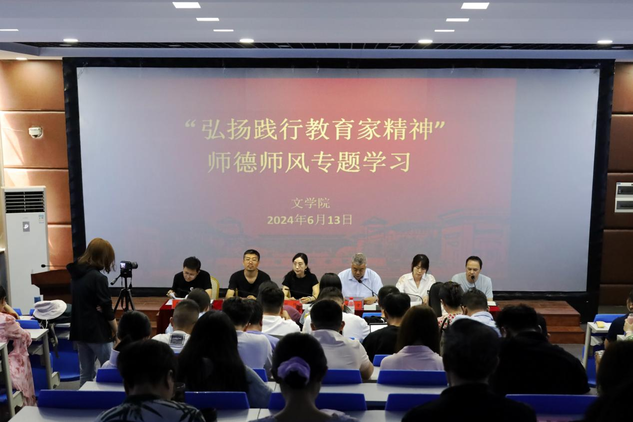 6月13日下午,文学院于A8-102开展“弘扬践行教育家精神”师德师风专题学习,会议由副院长于涌主持,党委书记张方方讲话,全体教师参会。