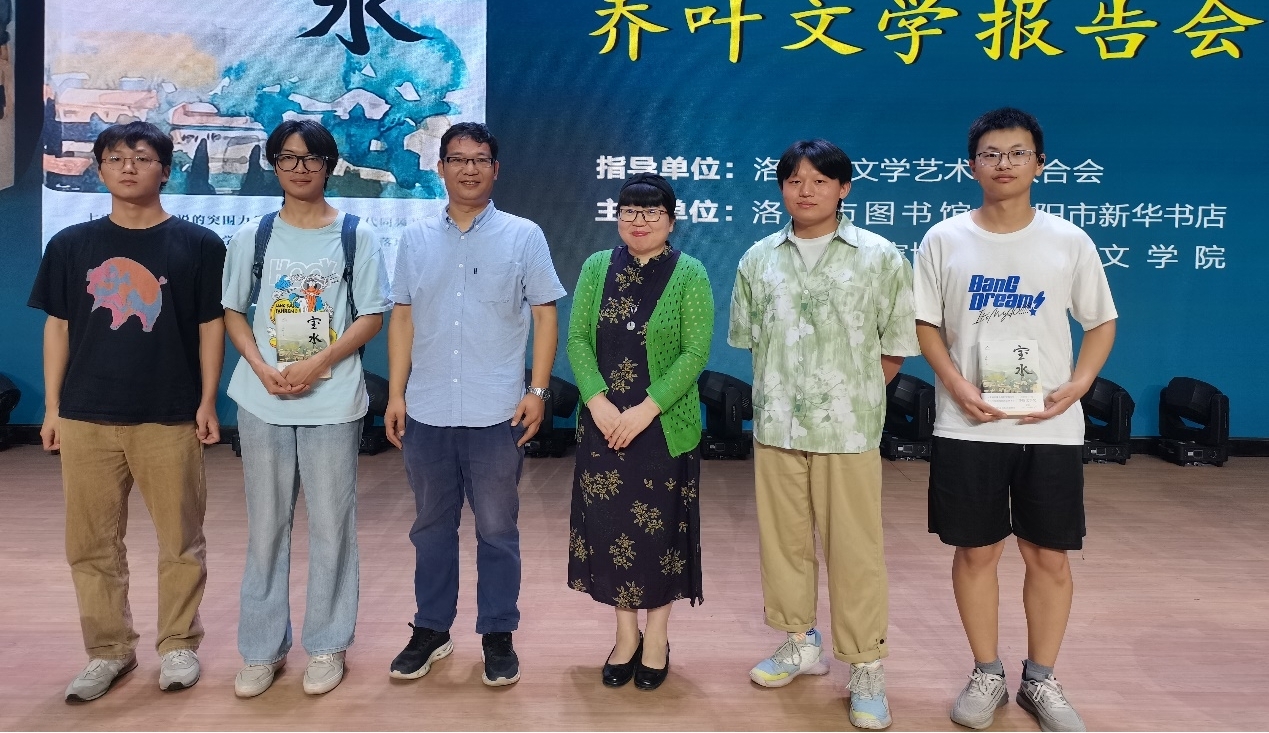 6月15日,著名作家乔叶莅临洛阳,在洛阳市图书馆举办了“小说背后的故事——第十一届茅盾文学奖获得者乔叶文学报告会”。洛阳师范学院文学院教师、洛阳市作家协会副主席、文学院作家实验班班主任张艳庭博士主持此次文学报告会,并与乔叶老师进行了对话。洛阳市文联党组书记柴洪涛,洛阳市新华书店党委委员、纪检组长晋武谦,洛阳市文联党组成员、副主席陈鋆宝,洛阳市图书馆副馆长张亚,洛阳市作家协会主席团成员等多位领导,百余名文学爱好者和文学院作家实验班部分学生参加了此次文学报告会。