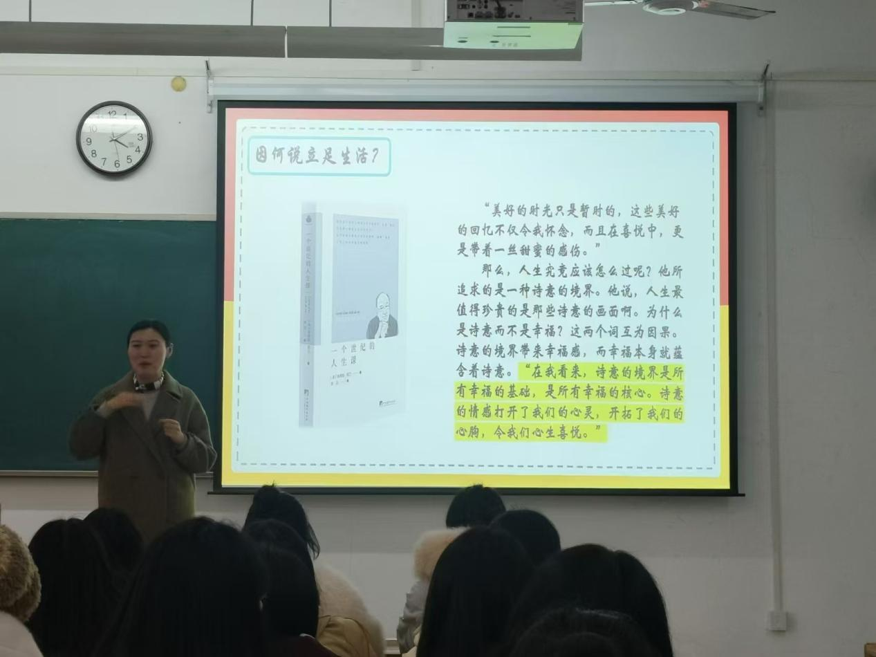 活动伊始,刘恒院长先简要介绍了主讲人刘慧琳老师,并强调中学语文名师进课堂的活动对卓越班学生专业成长的重要意义,要求同学们认真聆听、积极发言。接着,刘慧琳老师围绕主题,讲述语文教师如何发现生活中的诗意,并且把生活诗意和语文教学完美结合起来。她强调,语文课堂应紧密联系实际生活,培养学生的思维能力和语言表达能力,让语文课堂真正生动有趣起来。再次,刘慧琳老师通过具体的案例分析,向学生们讲授如何更好地进行文本细读,提升语文教师的文本解读能力,并指出融入教师独立思考的文本解读对于语文教师的重要性。最后,刘慧琳老师建议同学们要喜于发现、乐于感受、善于思考和勤于记录,真心热爱教师岗位,精益求精,向下扎根,看到远方,在学习过程中要勤学善思,立足生活,感受文学的魅力。