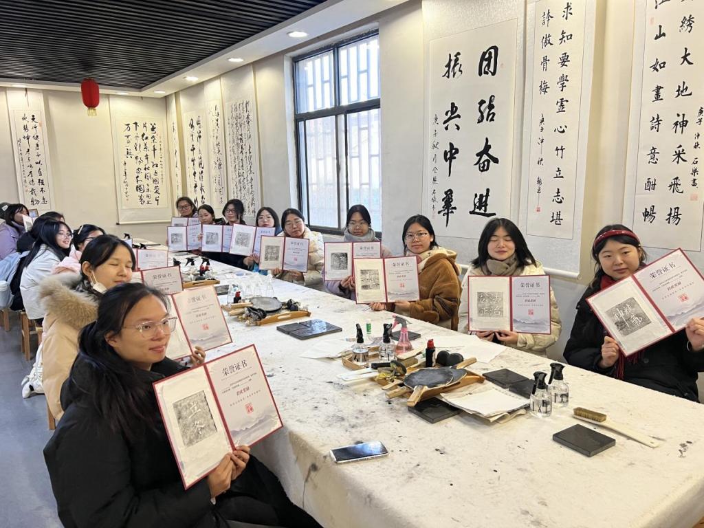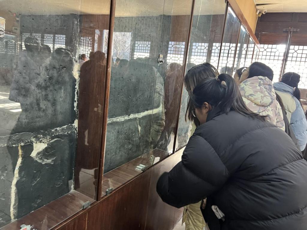 下午参访了王铎故居。研学学生观赏王铎的楷书、行书、狂草等书法碑刻及拓片,参观宅居园林,了解故居房屋设置、用途,体验碑刻拓片制作,从而对王铎其人其书有了广泛了解,对书法拓片制造有了亲身体验,对明清建筑艺术有了直观感受,提高了对中国书法文化、建筑文化、园林文化的认知和兴趣。