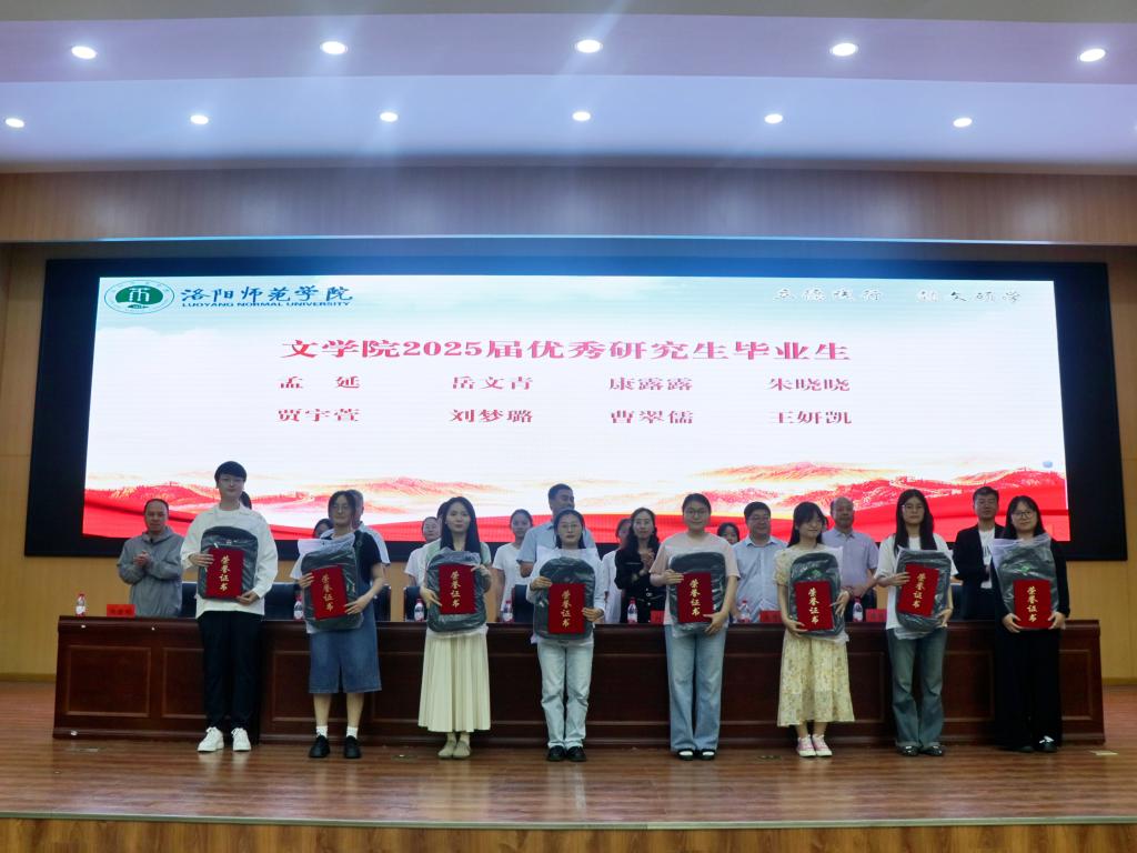 为鼓励先进、树立榜样,激励学子踔厉奋发,5月15日下午,文学院在G1-112报告厅召开2025届优秀毕业生表彰大会。招生就业处处长刁鸿安、党委学工部部长郎晓林、团委书记高莹、教务处副处长马有忠及文学院班子成员出席大会,学院全体教师、2025届毕业生代表、2026届全体毕业生参会。