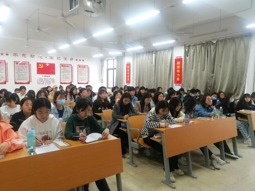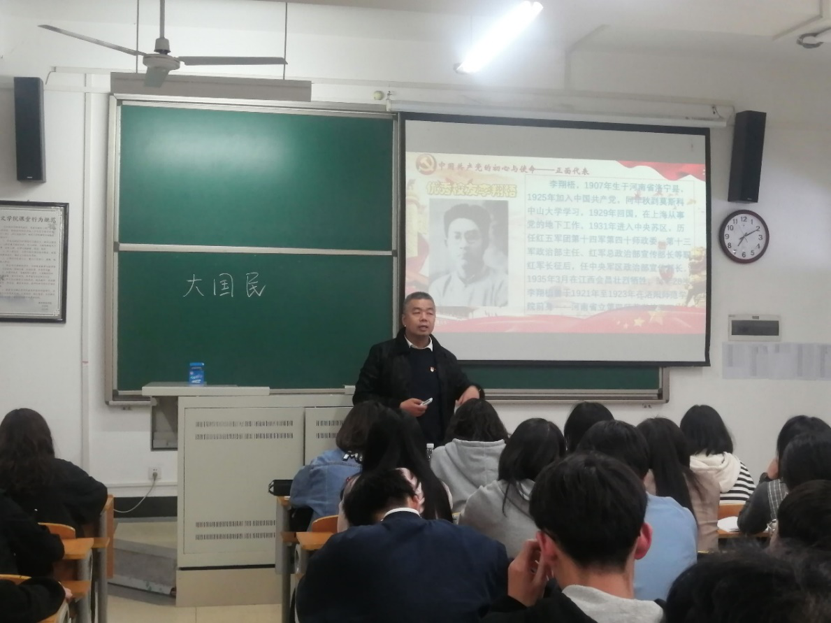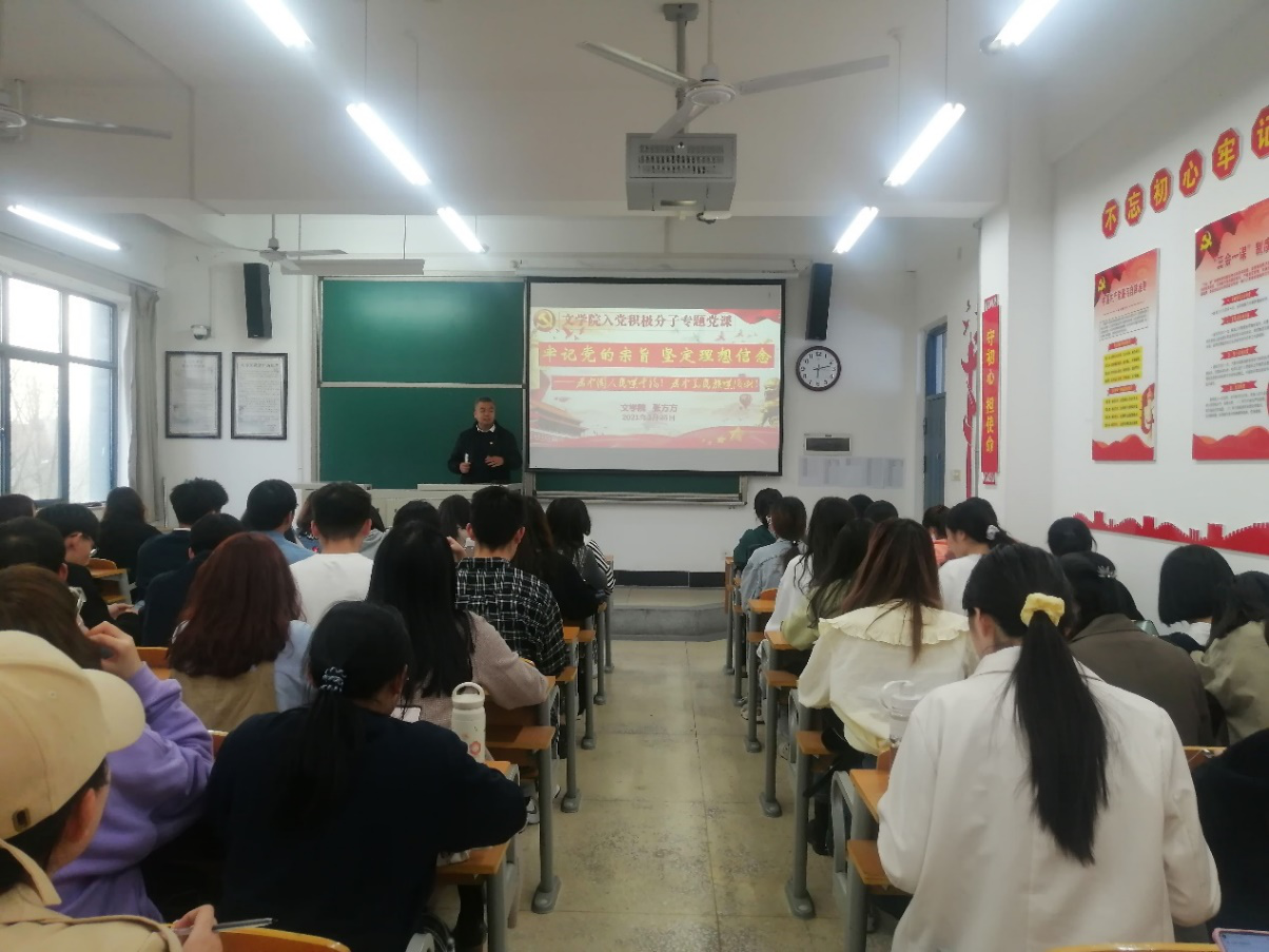 3月25日晚,文学院党委副书记于A8-314教室为2021年上半年入党积极分子上党课。此次党课的主题是“牢记党的宗旨,坚定理想信念”。