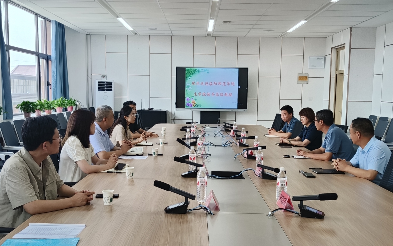 会后,班子成员到洛阳师范学院附属高级中学开展走访调研,与附中领导开展深度交流洽谈。双方在搭建合作平台方面达成共识,举行了“洛阳师范学院大学生实习就业基地”授牌仪式。