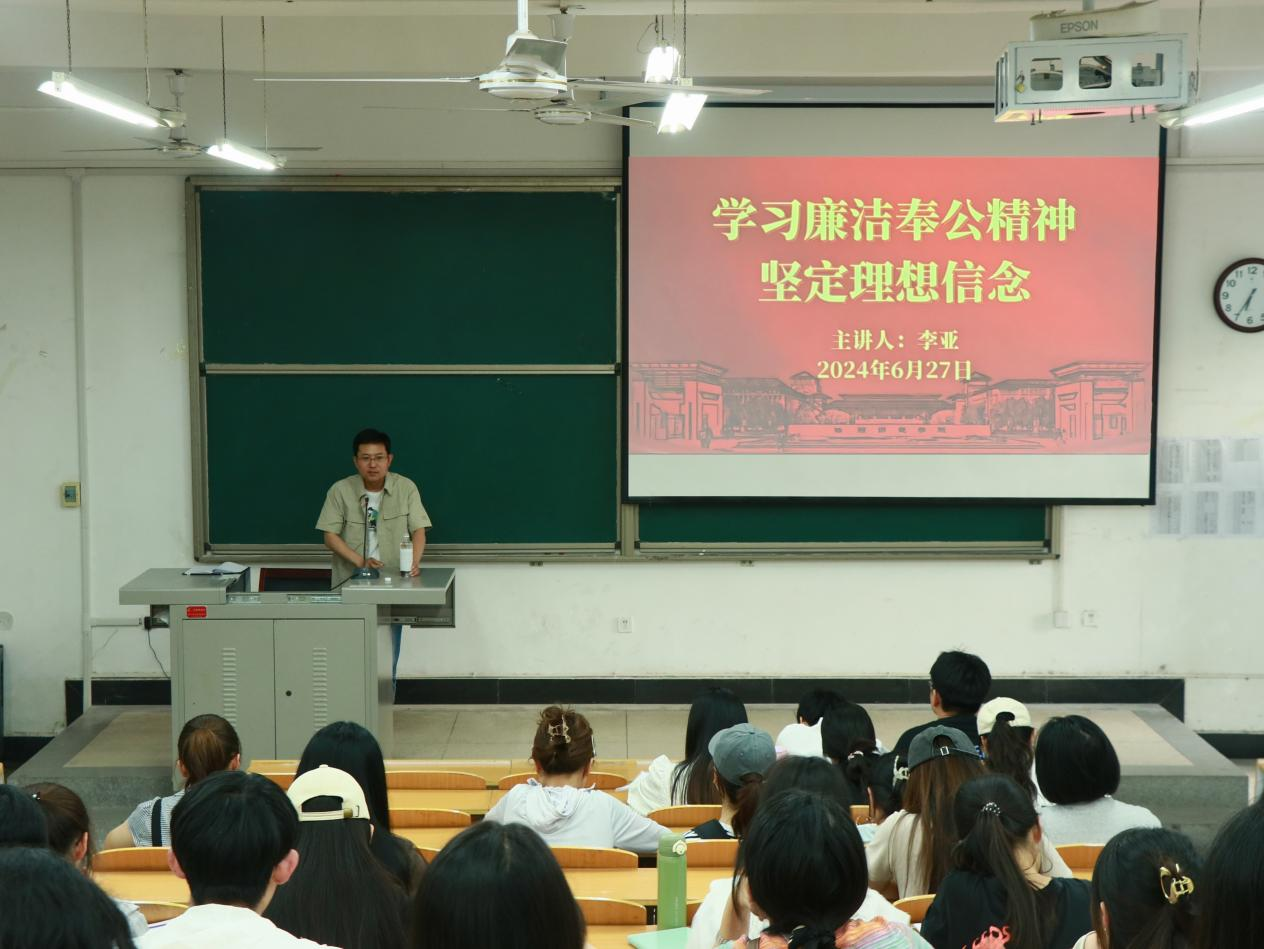 6月27日下午,文学院于A8-101开展以“学习廉洁奉公精神,坚定理想信念”为主题的党课,此次党课由文学院副院长李亚主讲,学生党员参加学习。