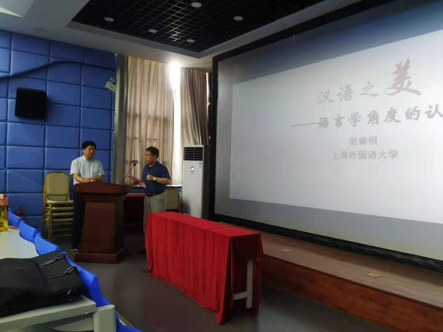 2021年6月27日上午10点,上海外国语大学博士生导师吴春相教授在文学院A8-102教室,为文学院师生带来了以《汉语之美——语言学角度的认知》为题目的精彩讲座。本次讲座由文学院院长王建国担任主持,文学院语言学教研室老师、教育硕士研究生以及有意愿报考语言学硕士的本科生参加了本次讲座。