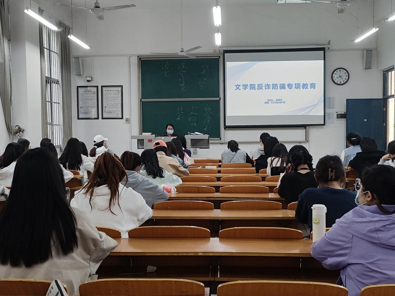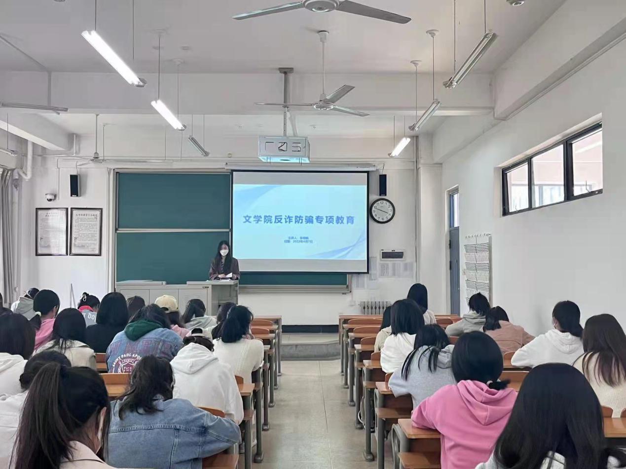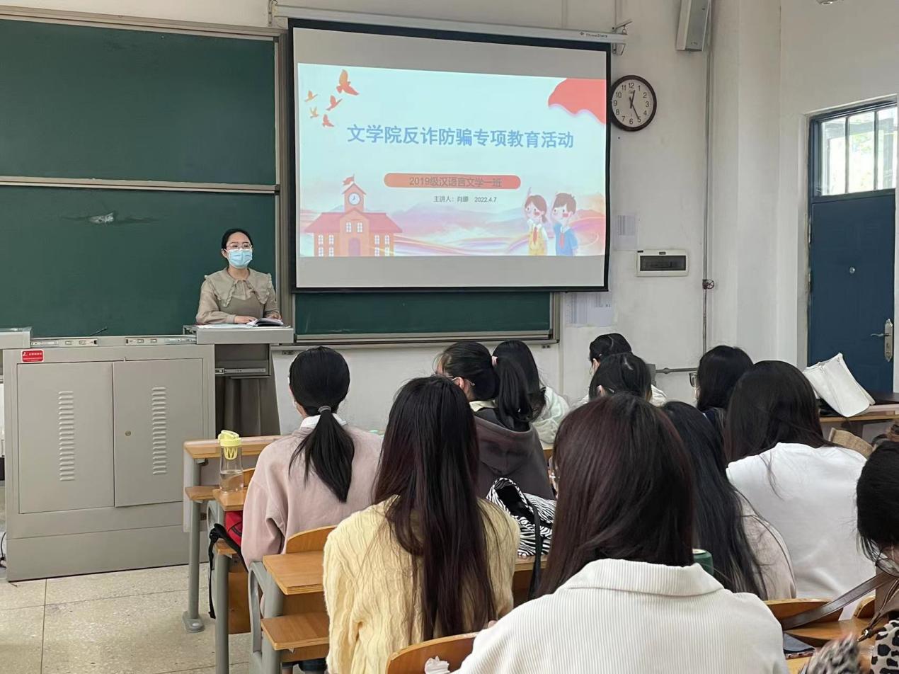 为打造平安校园、健康校园,增强学生自我保护意识,4月7日下午,文学院组织开展了反诈防骗主题班会,各年级辅导员依次安排并主持此次班会,文学院全体学生参加。