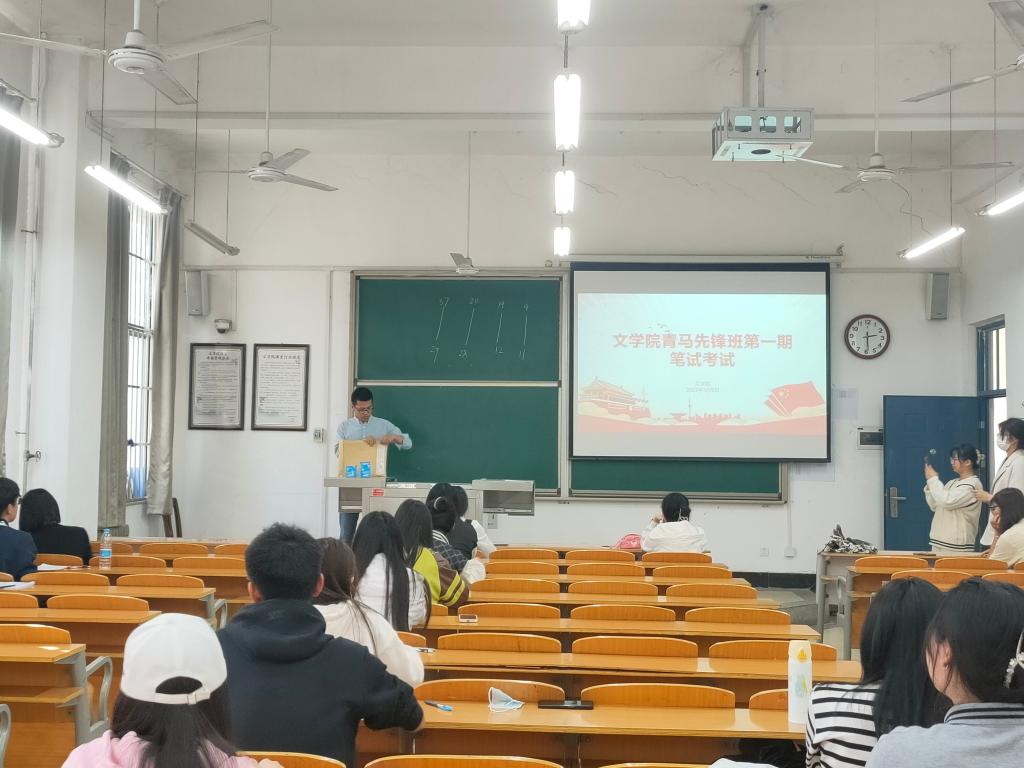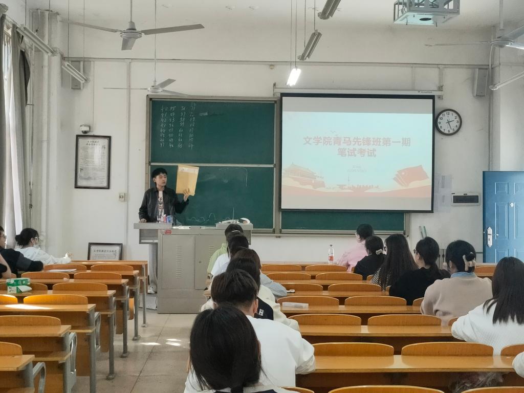 为深入学习贯彻党的二十大重要讲话精神,进一步加强我院大学生骨干的政治理论学习,培养和造就信仰坚定、能力突出、素质优良、作风过硬的青年政治骨干,文学院于3月9日下午在A8-113和114教室组织青马先锋班第一期笔试考试,参加对象为第一期青马先锋班报名学生。文学院团委负责老师赵子晗和辅导员老师刘渡祥启封试卷并开始考试。本次青马先锋班选拔笔试考试时长为90分钟。开考前老师向大家详细地说明了考试的注意事项,考生们遵守考试准则,诚信考试,认真答题。考试结束,考生们上交完试卷有序离场。本次笔试的开展,进一步提高了参试学生的理论知识水平,让学生们对党的大政方针、团员的基本任务有了更深的认识,对未来党团知识的学习有了更明确的方向。同时也为后续“青马班”课程的开展奠定了基础。