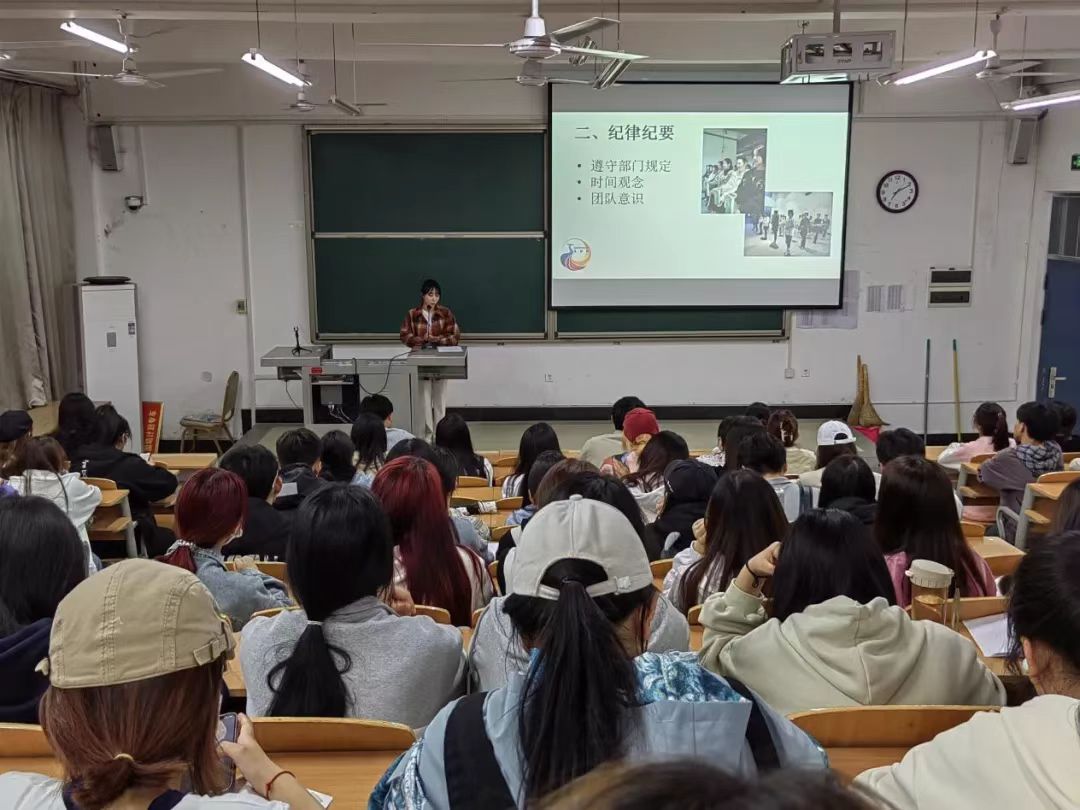 文学院邀请礼仪队于4月13日晚上在文学院101教室给全体学生干部进行文明礼仪及纪律的培训,各部门成员均参加了此次培训。