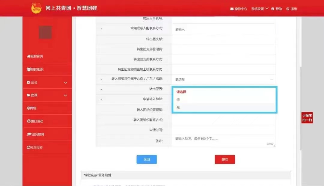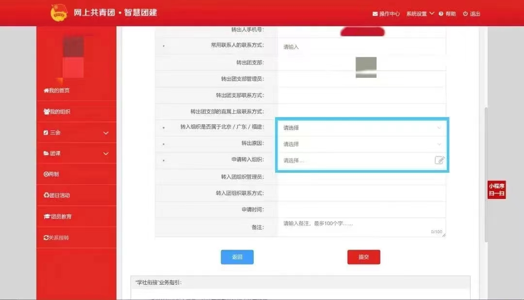 (3)参军入伍:原就读学校团组织或团员本人在“智慧团建”系统上发起组织关系转接申请,省级团委审核通过后,进入特殊单位专属库集中管理,最后进入涉密单位工作的参照办理。