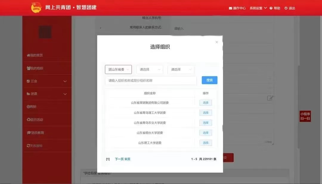 首先检查组织名称是否正确;第二,查看选择的省份是否正确,选择转入系统团委团组织时,要根据实际组织架构,选择所在组织体系,不能根据组织所在地选择具体省份,选择好省份后,无需选择市级、县级组织,通过关键词搜索的方式可以进行查找,查找结果一般较多,建议多翻找几页;第三,确认要转入的组织不是毕业生团组织。如果不涉及以上几个问题,可以将相关信息及截图发送至系统邮箱进行核查。