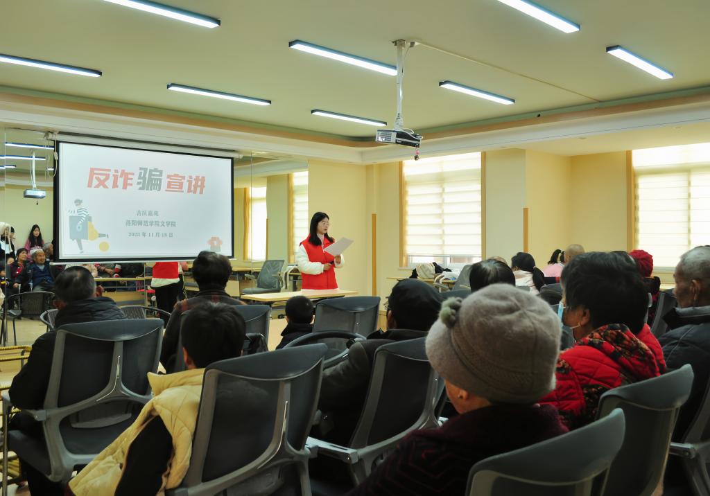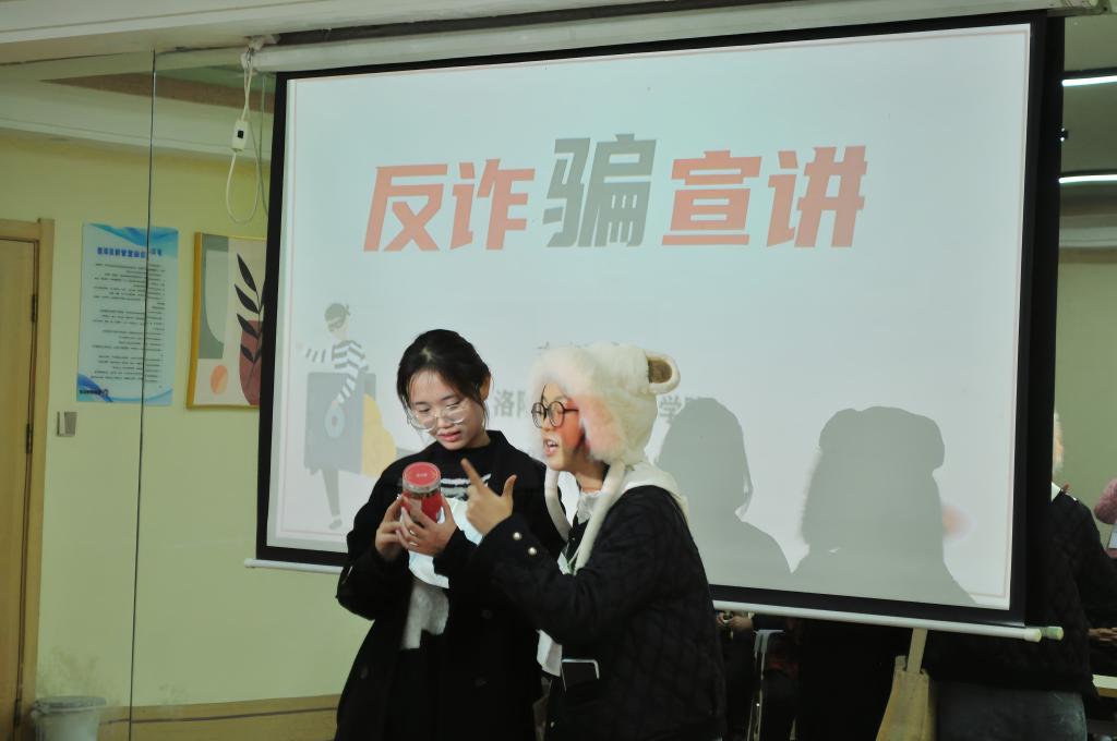 为增强社区居民识骗、拒骗、防骗的意识和能力,11月18号上午,我院在团委副书记赵子晗的带领下,前往吉庆嘉苑社区,开展防范网络诈骗宣讲活动。