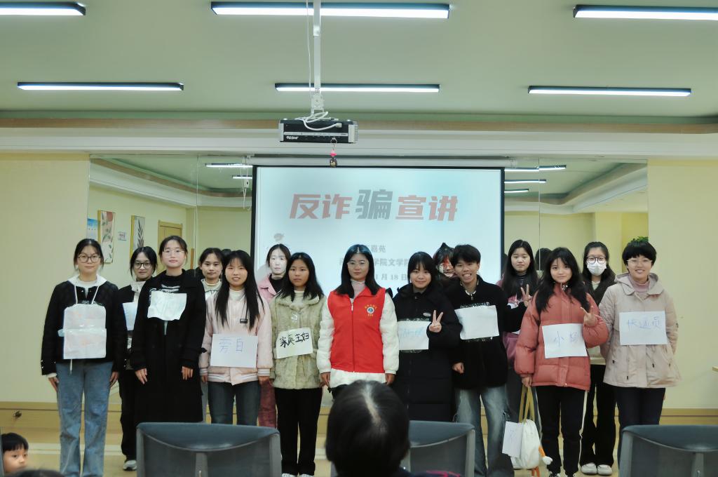 此次活动,文学院志愿者深入社区,普及网络诈骗相关知识,不仅增强了社区居民防诈骗意识,同时提高了广大学生的防诈骗能力,更好地维护了人民群众的财产安全和社会稳定。