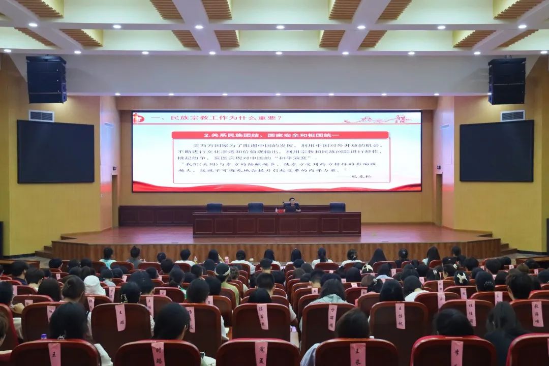 副校长张运礼围绕“答好青春之问,担好青春之责”向全体学生骨干进行培训。他指出广大青年一定要以实干笃定前行,不负时代、不负韶华。党委统战部副部长孙瑞丽围绕“增强责任担当意识,共筑校园民族宗教领域安全防线”向全体学生讲授了民族宗教工作政策和铸牢中华民族共同体意识的意义,希望广大青年自觉筑牢社会主义核心价值观,做民族团结的维护者和参与者。