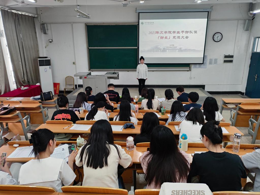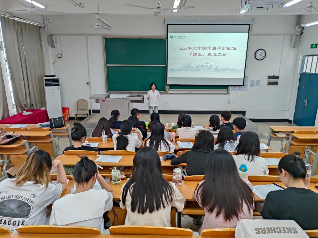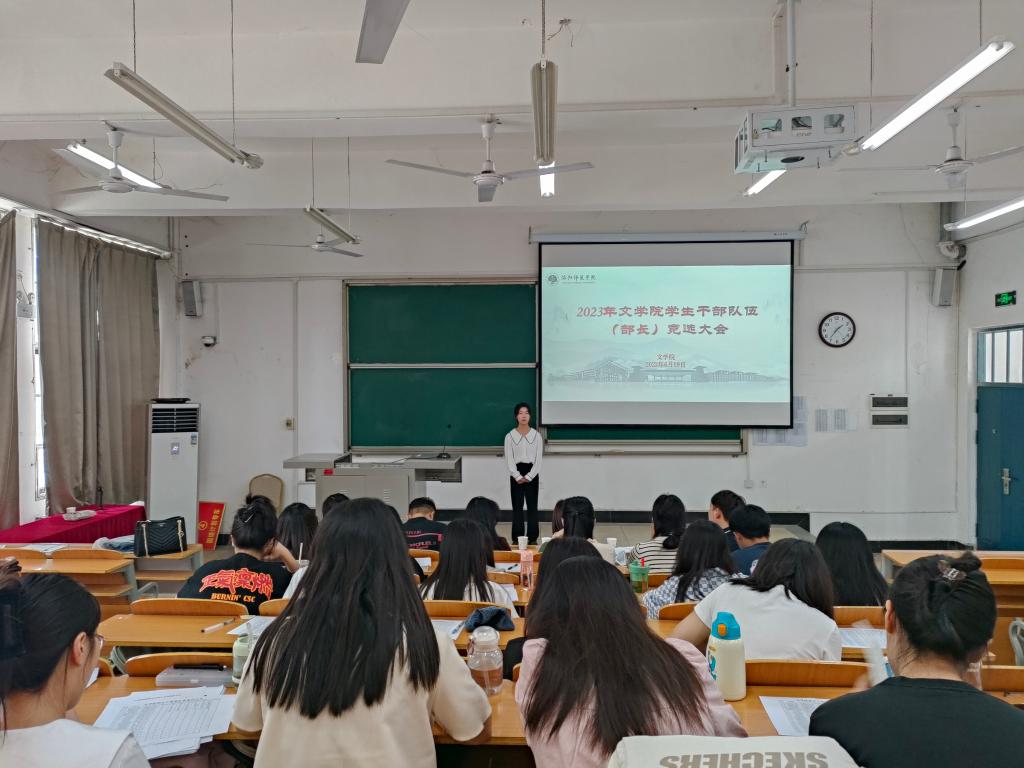 为进一步加强文学院学生干部队伍建设,选拔出一批敢当重任、为同学服务的学生干部,6月19日,文学院于A8-101开展学生干部队伍竞选大会,文学院党委副书记张曼、文学院辅导员、学生代表和各部门竞选人员参与会议。