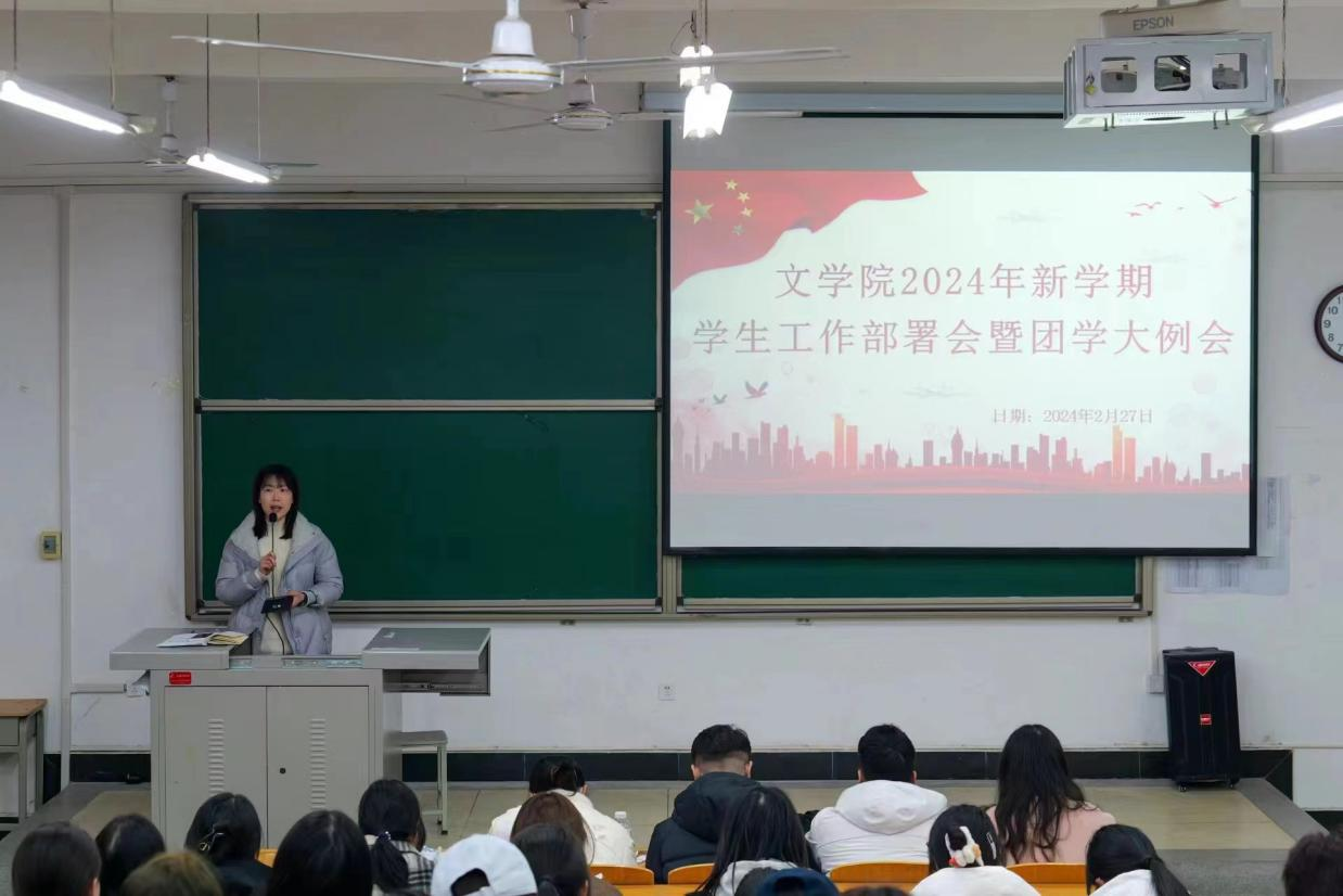2月27日下午,文学院于A8-101会议室召开2024年学生工作部署会暨第一次团学大例会,党委副书记张曼、全体辅导员及各班班长、团支书等主要学生干部参会,会议由辅导员赵子晗主持。