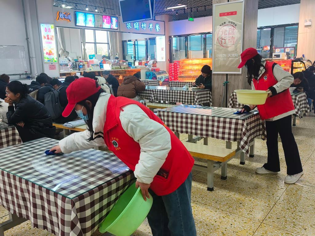 开学伊始,为维护学院周边文明环境,分团委将持续开展安全文明岗志愿服务活动,督促同学们文明规范摆放车辆,努力营造良好的学习环境。2023级汉语言文学专业1班团支部前往庞村镇敬老院开展义务清洁志愿服务,用实际行动诠释尊老爱老的传统美德,传递社会正能量。3月5日,学院青年志愿者部组织志愿者们在李园餐厅,进行文明督导志愿活动,志愿者们帮助食堂阿姨清理餐具,疏散周边车辆等,旨在为广大师生创建一个“清洁、文明、舒适”的就餐环境。