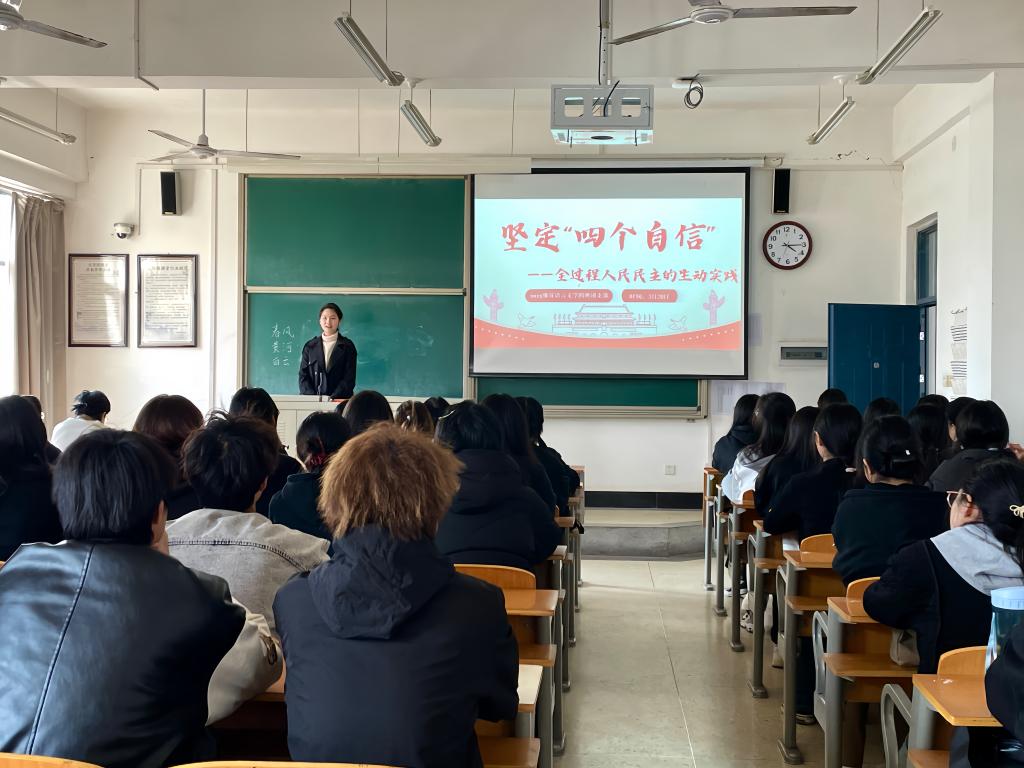 为强化团员青年思想政治引领,带领他们深刻感悟我国国家制度和国家治理体系的显著优势,鼓励团员青年有序参与社会主义民主政治实践,我院汉语言文学专业2023级4班团支部以“坚定‘四个自信’—全过程人民民主的生动实践”为主题,开展示范性团日活动。