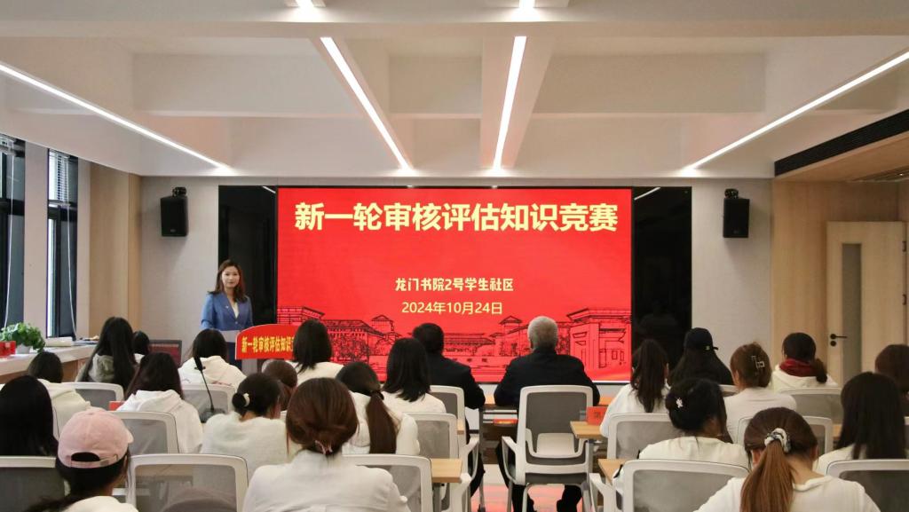为营造“人人关心评估、人人了解评估、人人参与评估、人人都是评估对象”的评估氛围,10月24日下午,龙门书院2号学生社区在书院崇学讲堂开展新一轮本科教育教学审核评估知识答题竞赛。书院社区领导班子成员、全体育人导师,40余名学生代表参加比赛。