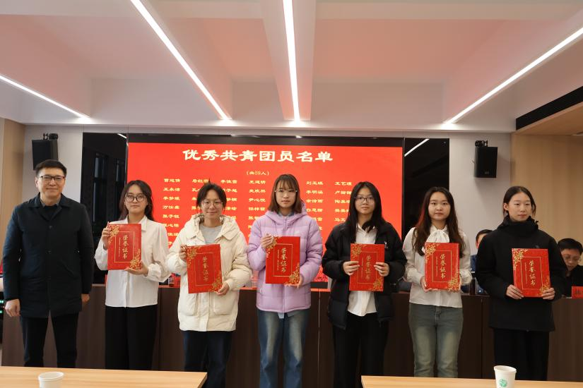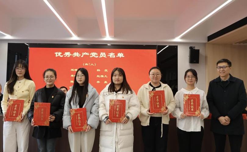 校党委委员、党委组织部部长索秋平为“优秀共产党员”代表、“优秀共青团员”代表颁发荣誉证书。