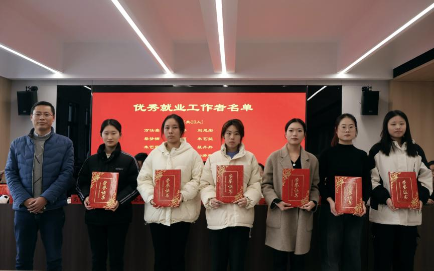 后勤处副处长王兴春为“优秀就业工作者”代表颁发荣誉证书。
