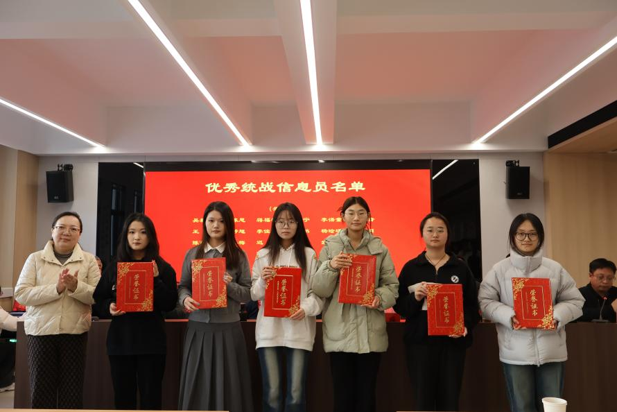 校党委委员、党委统战部部长吴瑶为“优秀学生统战信息员”代表、“学习标兵”代表颁发荣誉证书。