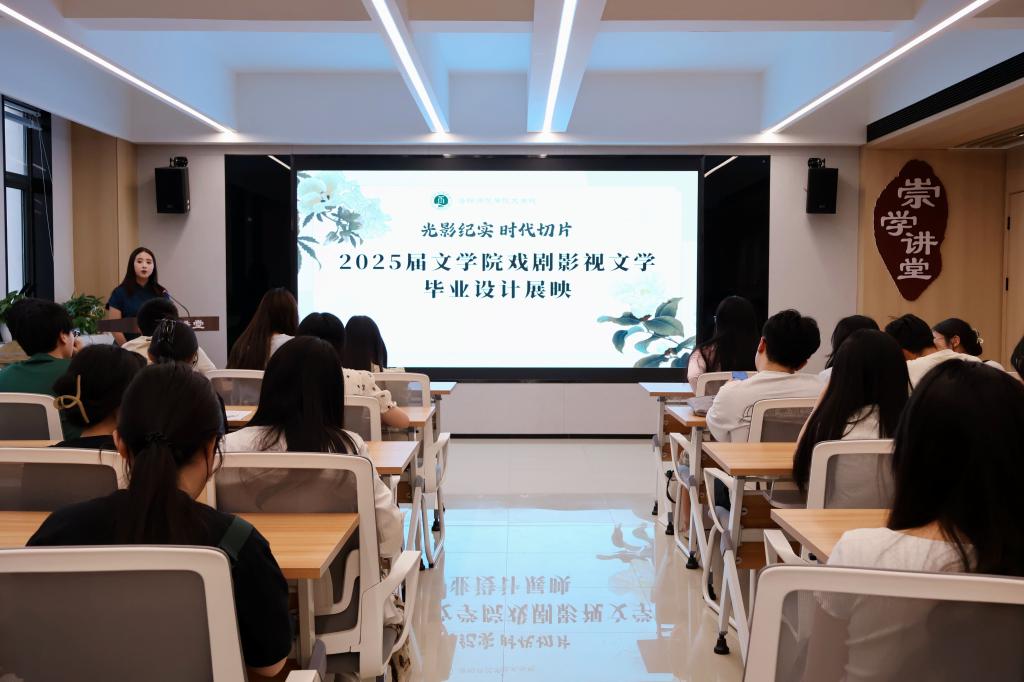 5月19日晚,文学院联合龙门书院二号学生社区在崇学讲堂成功举办“光影纪实·时代切片”2025届戏剧影视文学专业优秀毕业作品展映活动。本次活动集中展示了5部优秀毕业作品,学业教师吴茜、张莉、孙天宇及近百名学生参与。