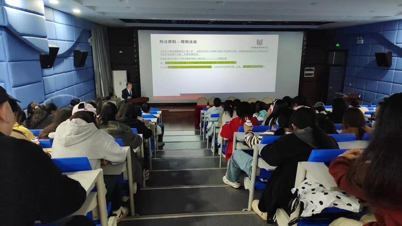 本次讲座由文学院辅导员李楠主持,河南都典律师事务所律师郑宝宝主讲,文学院23级部分学生聆听。郑律师从不能突破的底线、社会生活的法律保障、常见犯罪行为及民事纠纷、热点职业风险提醒四个方面进行讲解,他结合亲身经历的违法案件及热点问题向同学们传播法律知识,提高同学们的法律意识。最后,郑律师向同学们科普了法律援助的相关知识,同学们可以通过可靠途径保护自身合法权益。