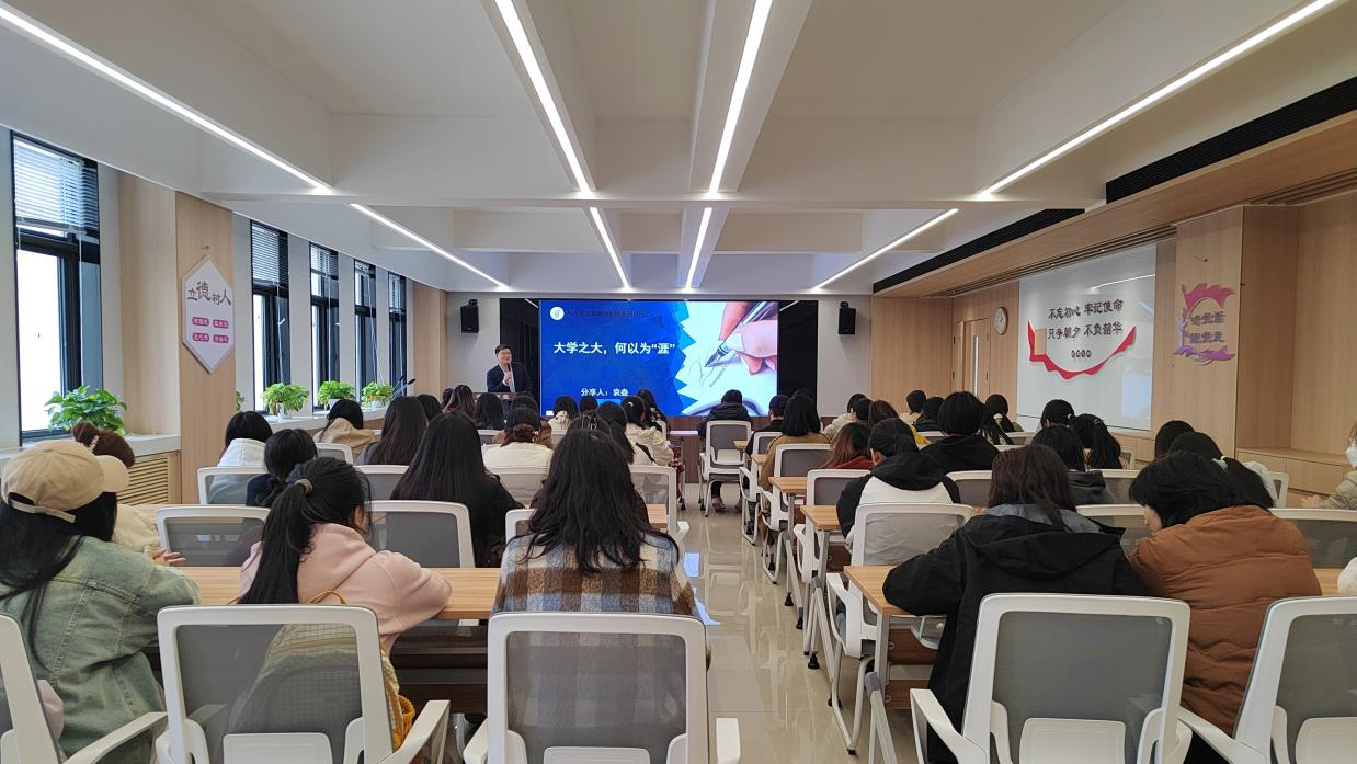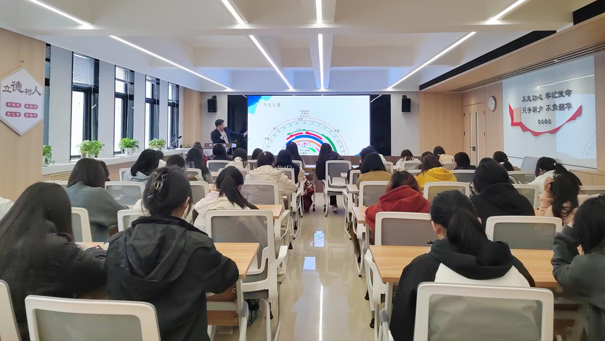 袁盎老师以“大学之大,何以为涯”为题,围绕当今社会的就业形势,强调了大学生生涯规划的重要性。他从文化视角分享了孔子、孟子等名人事迹,结合舒伯生涯彩虹图、马斯洛需要层次理论等引导学生在做规划时既要全面审视自我,又要积极参与各种实践锻炼,鼓励同学们参与各项专业赛事持续开展自我赋能。最后,袁老师重点向大家介绍了办公软件PPT的使用和制作重点。