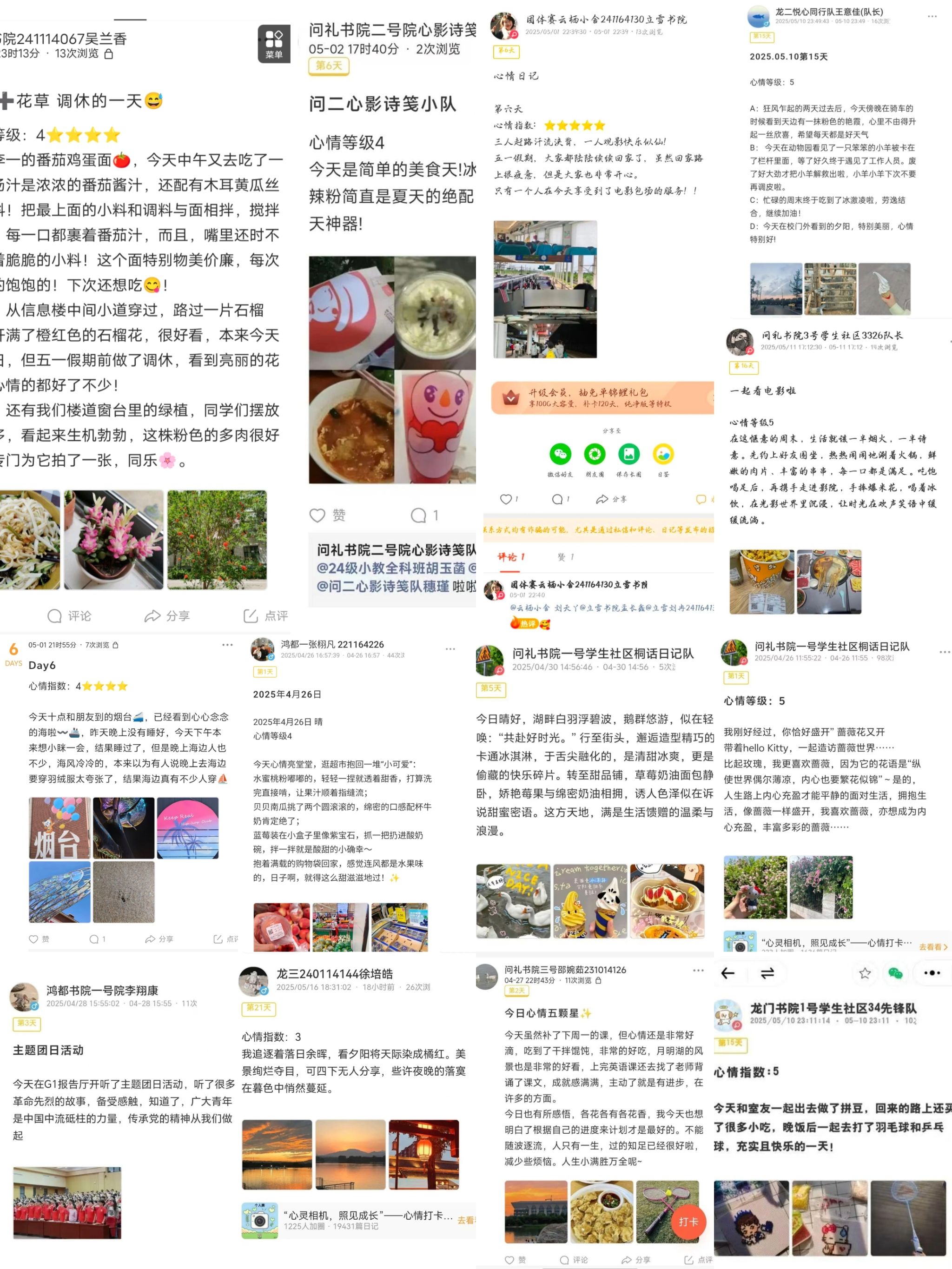 开展“心灵相机 照见成长” 心情日记打卡活动,鼓励大家通过拍摄记录日常生活中的积极瞬间,并对照片进行感悟与反思。活动旨在帮助同学们调节情绪、提升自我认知,在发现美好中实现心灵疗愈与成长。