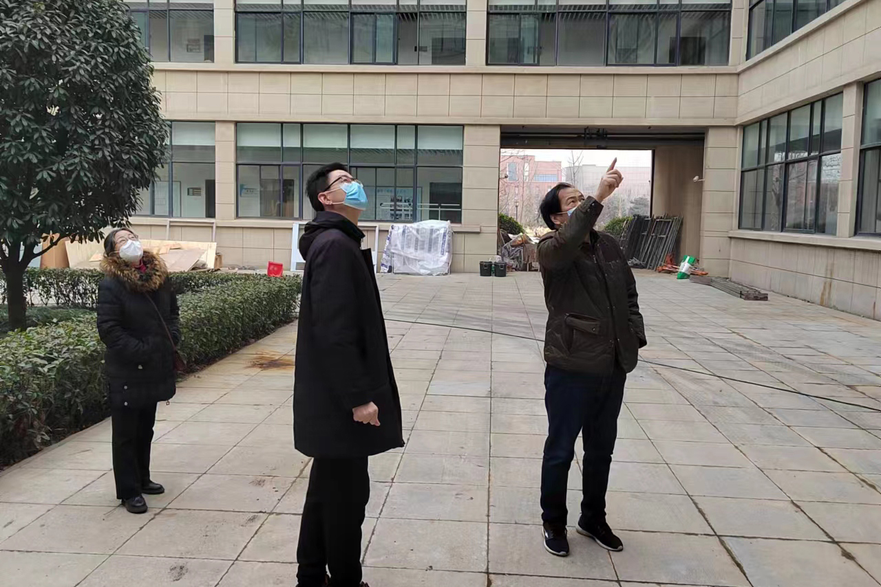 随后,郭处长一行来到成均楼安装电梯项目、西北角围墙项目、图书馆中央空调维修项目现场查看施工进度以及执行情况。