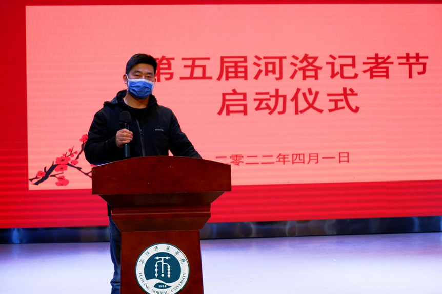 河洛记者团指导老师黄靖逢致辞。他表达了对同学们的殷切期望,希望同学们能够在学习实践中提升自己的能力,为成为一名真正的新闻工作者而努力。