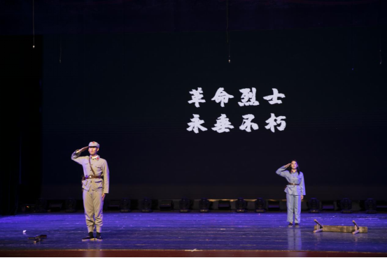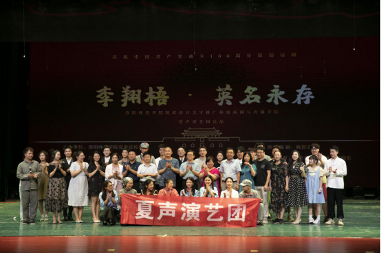 据悉,夏声演艺团演艺团共40余名演职人员参与演出,历经两个多月的排练。在排练过程中,为了更加贴近角色,同学们自觉查阅了大量关于李翔梧、冯品毅等烈士的事迹,既重温了党史,也点燃了爱国热情,丰富了精神世界。他们表示,这不仅是一次演出,更是一堂生动深刻的党史课。通过参演,真切地感悟到了红色政权来之不易、新中国来之不易、中国特色社会主义来之不易、今天的幸福生活来之不易,一定要从革命先烈的英雄事迹中汲取力量,继承先烈遗志,传承红色基因,锤炼过硬本领,用实际行动践行誓言,以优异成绩庆祝建党100周年。