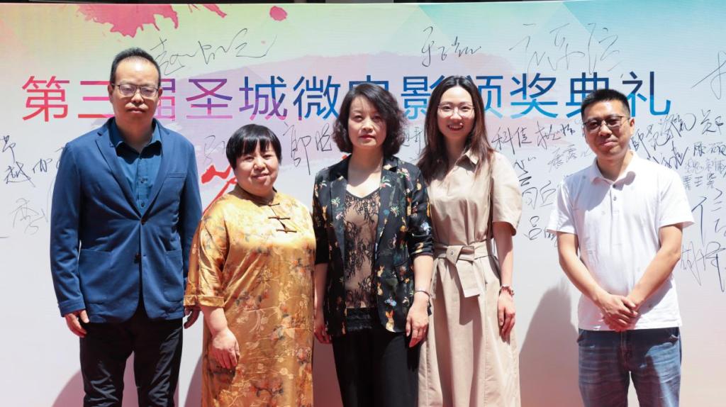 与会领导嘉宾分别为获得第三届圣城微电影节一、二、三等奖作品颁奖。