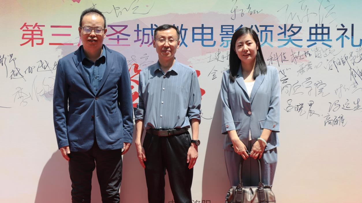 我院院长李正学提前准备了祝贺视频,对各位嘉宾的到来表示热烈欢迎,对此次颁奖典礼跨越疫情前后的顺利举办表示热烈祝贺,希望与会嘉宾能够深入交流,尽情分享,畅谈不一样的创作故事。副院长于正凯在现场致辞中表示,电影世界、人文美感流光溢彩,愿在圣城微电影节的舞台上,经典与时尚结合,将河洛文化、中原文化、黄河文化创造性转化,创新性发展,以优秀的作品尽情展示青春的韶华和艺术的风采。