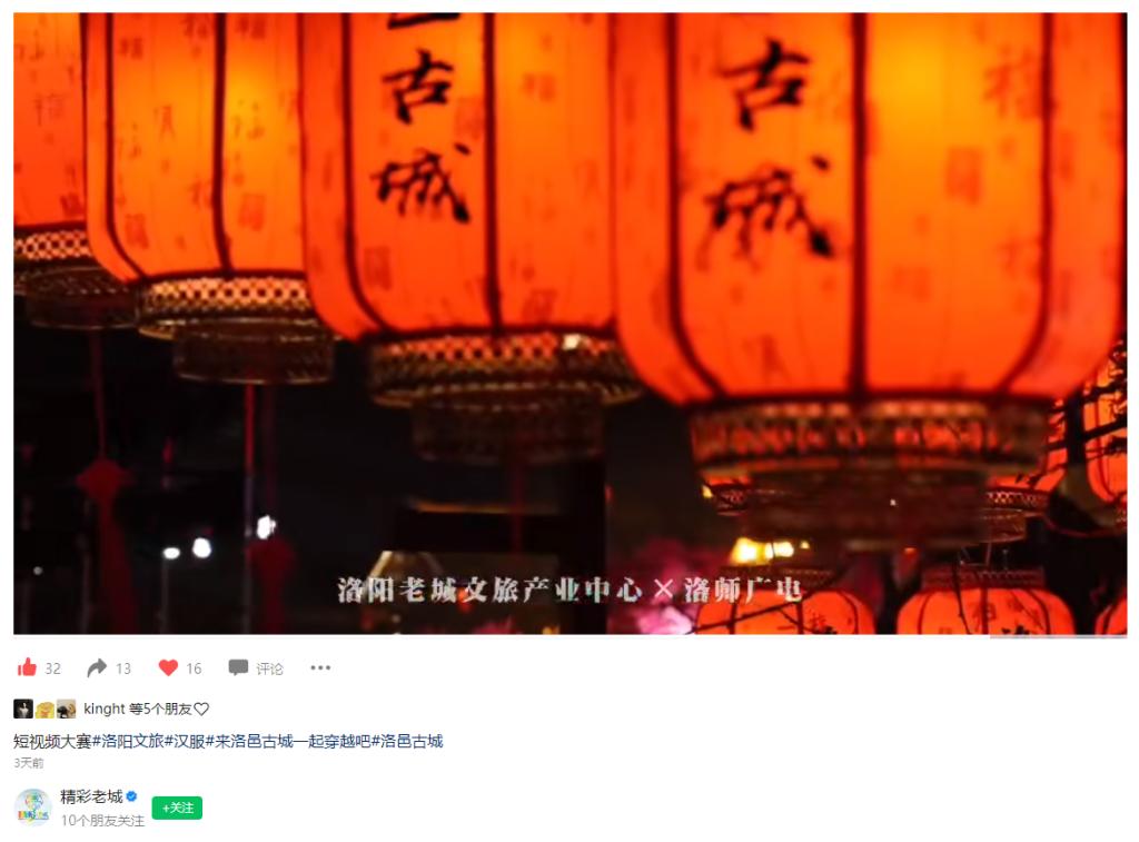 3月17日,老城区委宣传部官方视频号“精彩老城”转载洛师广电与洛阳老城文旅产业中心联合制作的“全国汉服短视频大赛颁奖仪式”微视频。