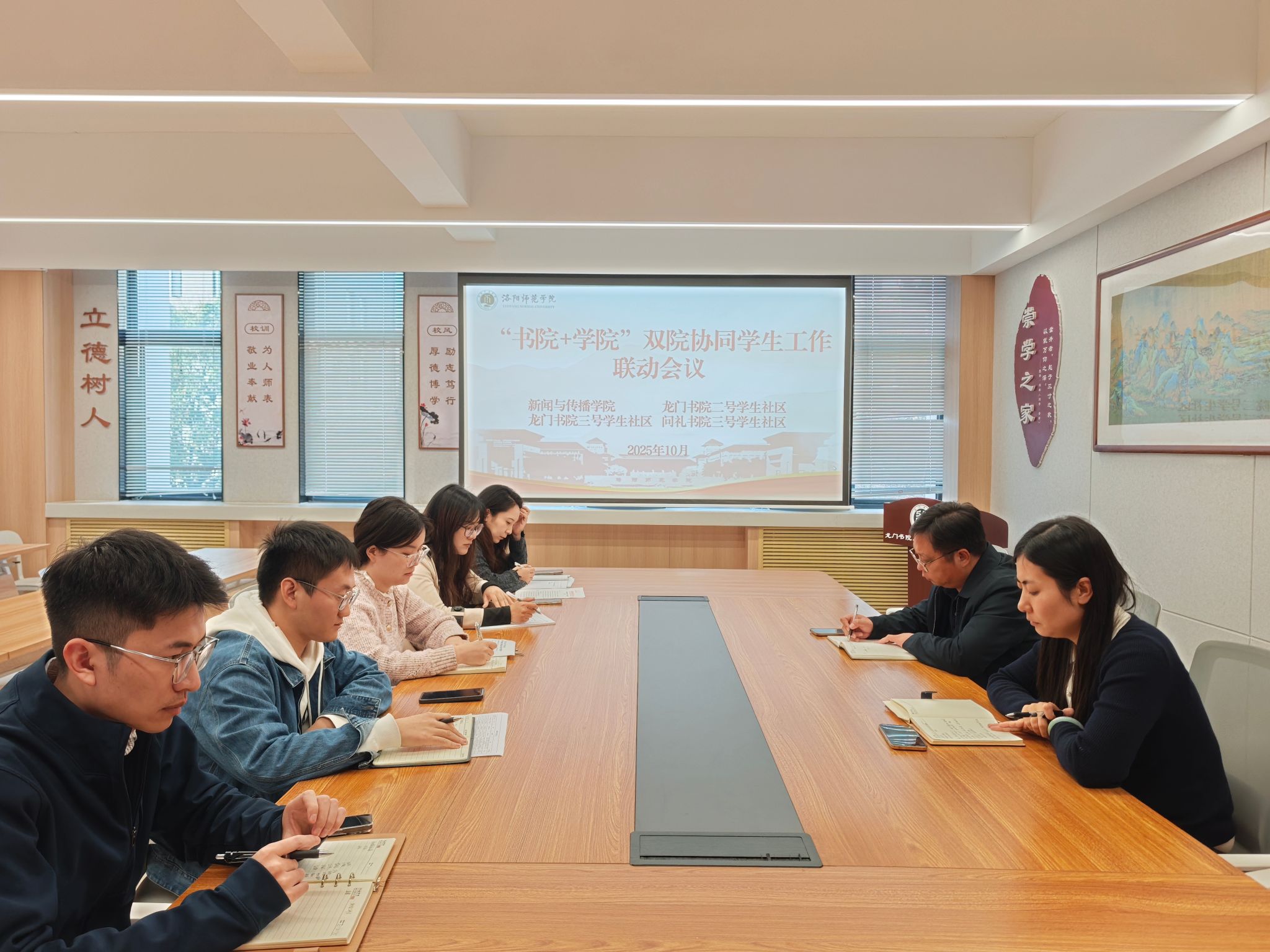 为深化育人成效,扎实推进新学期学风建设,高效落实近期各项学生工作安排,10月13日,新闻与传播学院联合龙门书院二号学生社区、龙门书院三号学生社区、问礼书院三号学生社区于崇学之家会议室召开双院协同学生工作联动会议。院党委书记韩守东、院党委副书记金宜洛与各书院育人导师共同参会。