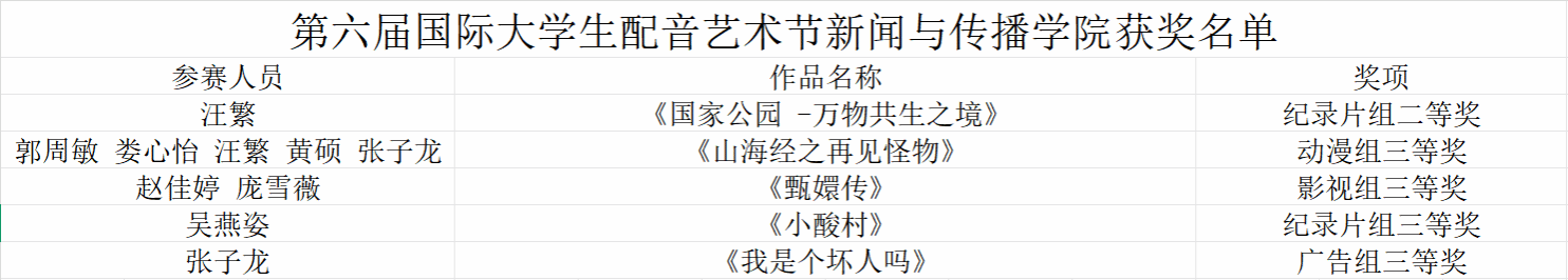 自本届比赛启动以来,学院高度重视赛事筹备工作,将其作为实践教学成果检验的重要平台。白溯、刘淏两位老师牵头组建备赛团队,从作品选题、角色定位到声音演绎,全程指导学生反复打磨细节,共向主办方提交高质量参赛作品30余部。此次获奖不仅集中展现了我院播音与主持艺术专业的实践教学实力,更对深化教育教学改革、推进产教融合、提升人才培养质量具有重要推动作用,将进一步增强我院相关专业在省内外的知名度与行业影响力。