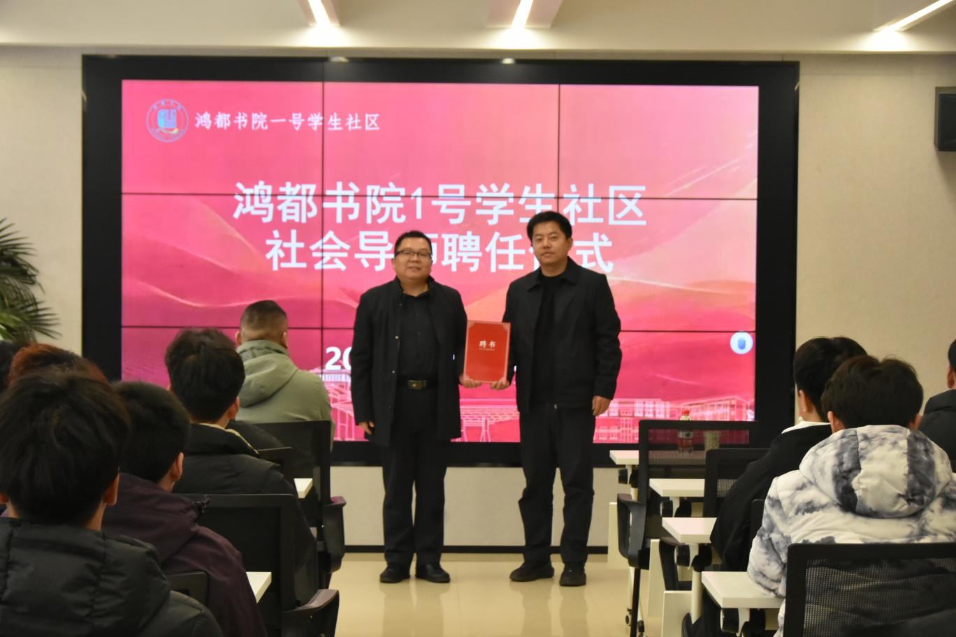 为深入推进书院社区建设,推动实现学校教育和社会教育的有效链接,12月11日上午,鸿都书院1号学生社区在鸿都学堂举办专题讲座暨社会导师聘任仪式。河南科技大学招生就业办公室(大学生就业创业指导中心)副主任朱林,我校招生就业处副处长张勇,我院党委副书记翟强、李海瑞,河南科技大学艺术与设计学院团委副书记彭泽科出席活动,我院全体育人导师、朋辈导师以及学生代表们参加,仪式由我院创新创业中心主任刘家豪主持。