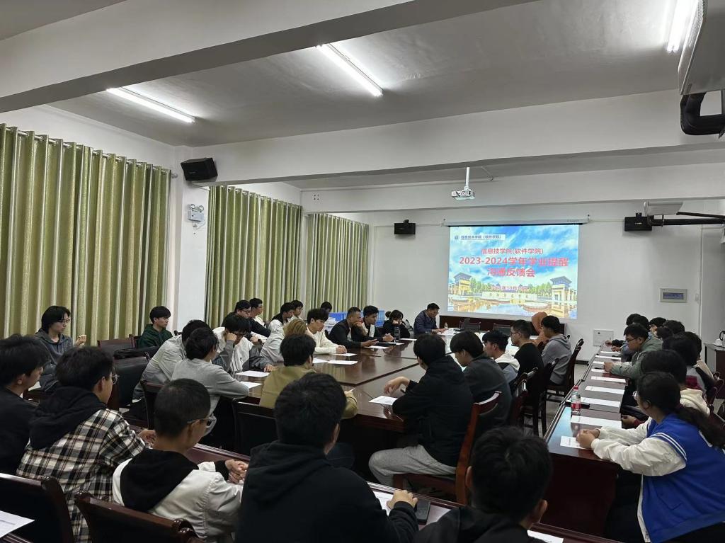 为进一步贯彻育人为本的教育理念,强化对学生的学业管理,根据《洛阳师范学院学生学业提醒机制实施办法》文件精神,10月19日下午,我院2023-2024-1学期学业提醒沟通反馈会在信息楼515会议室举行。出席本次大会的人员有信息技术学院副院长李德光以及学业预警学生,会议由耿克然主持。
