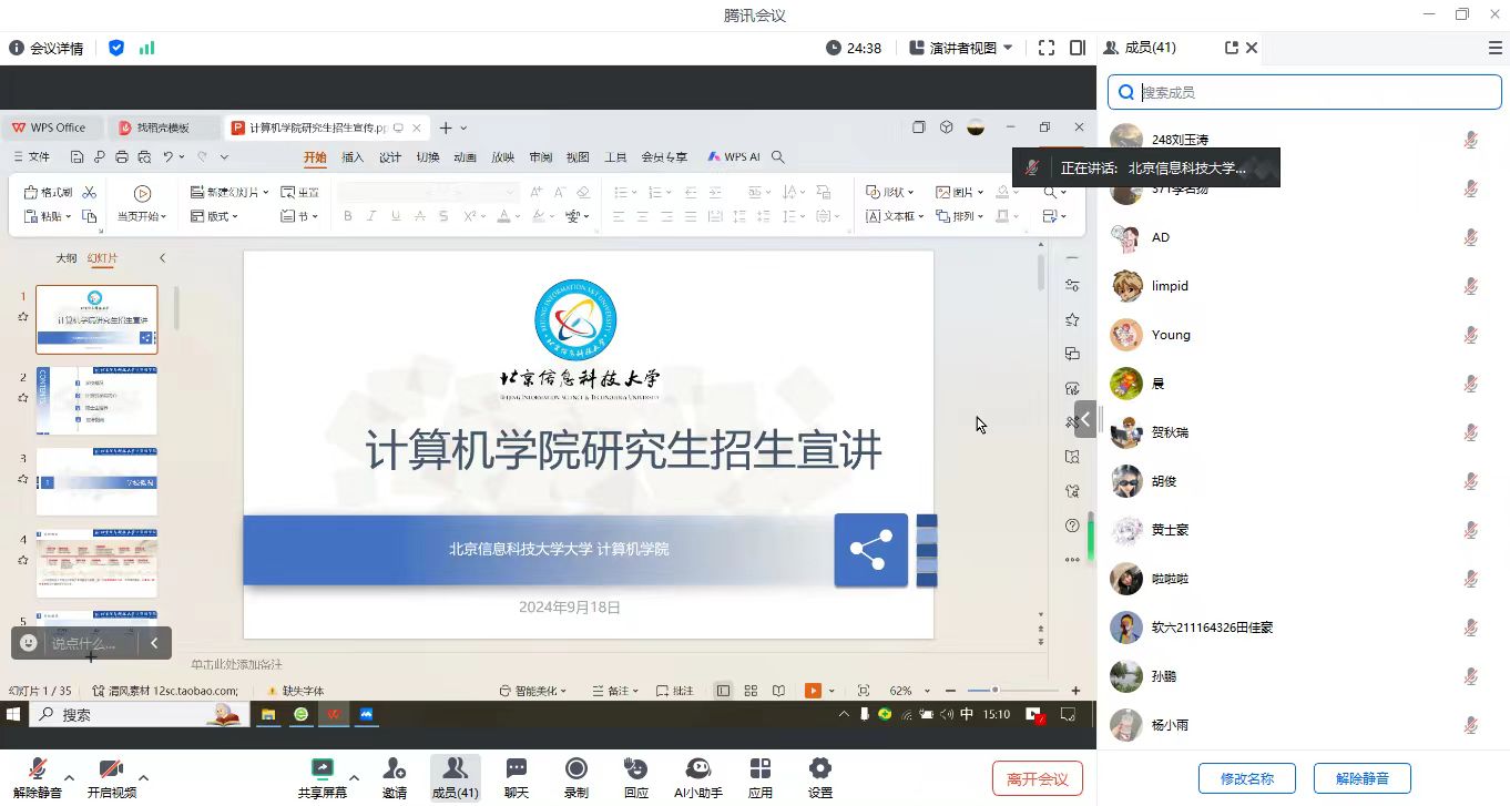 为了帮助考研学生深入了解院校信息,9月18日,我院特邀请北京信息科技大学计算机学院吕金娜老师就北京信息科技大学研究生计算机学院研究生招生进行线上宣讲,会议由副院长李德光主持。