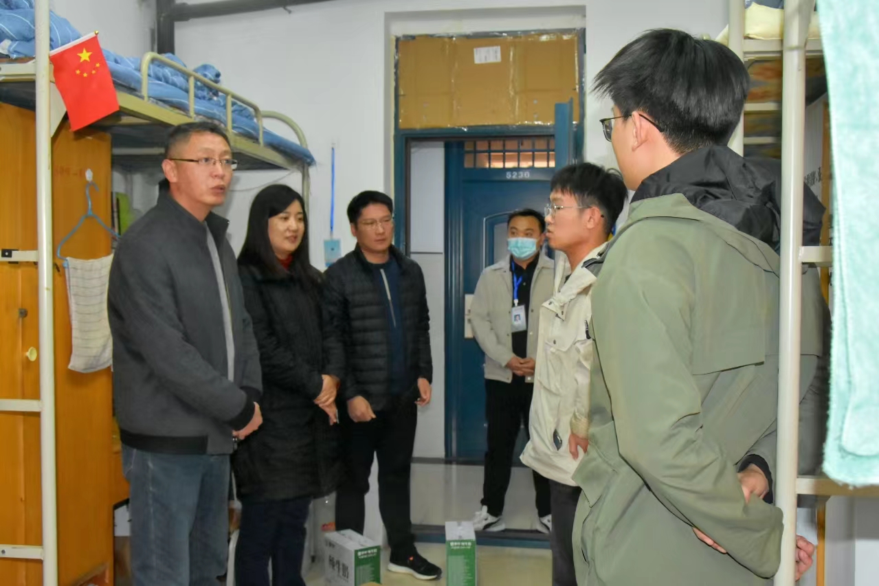 为鼓励考研学生凝心聚力,树立信心,做好临考冲刺,缓解备考压力,12月4日下午,信息技术学院党委书记曹凡、党委副书记董欢欢、副院长李德光带领毕业班辅导员深入学生宿舍,为考研学子送上爱心礼包。