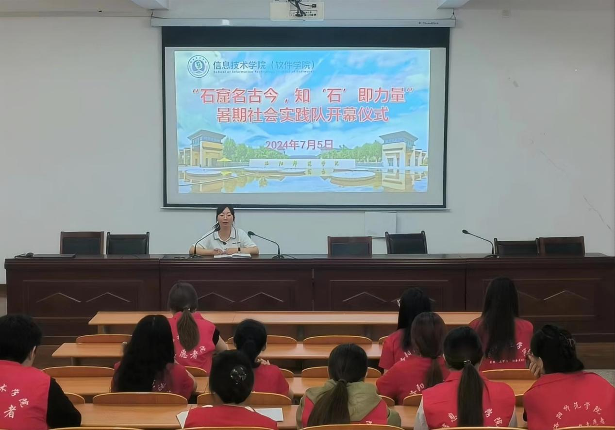 7月5日上午8:30,我院“石窟名古今,知‘石’即力量”暑期社会实践队在信息楼一楼报告厅举行经验交流会。我院团委副书记张倩倩出席,2023年暑期社会实践队优秀成员王晶、张舒雅、张高鹏及2024年暑期社会实践队全体成员参加。
