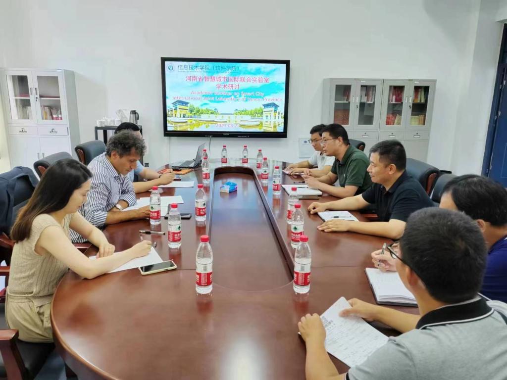 8月22日下午,河南省智慧城市国际联合实验室举办学术研讨活动,院长、实验室副主任张永新及实验室青年骨干教师参加了本次学术研讨活动。意大利福贾大学Maurizio Qiunto教授受邀参加了此次学术研讨活动,意大利研究中心教师王蒙、宋毅豪陪同参加了此次活动。