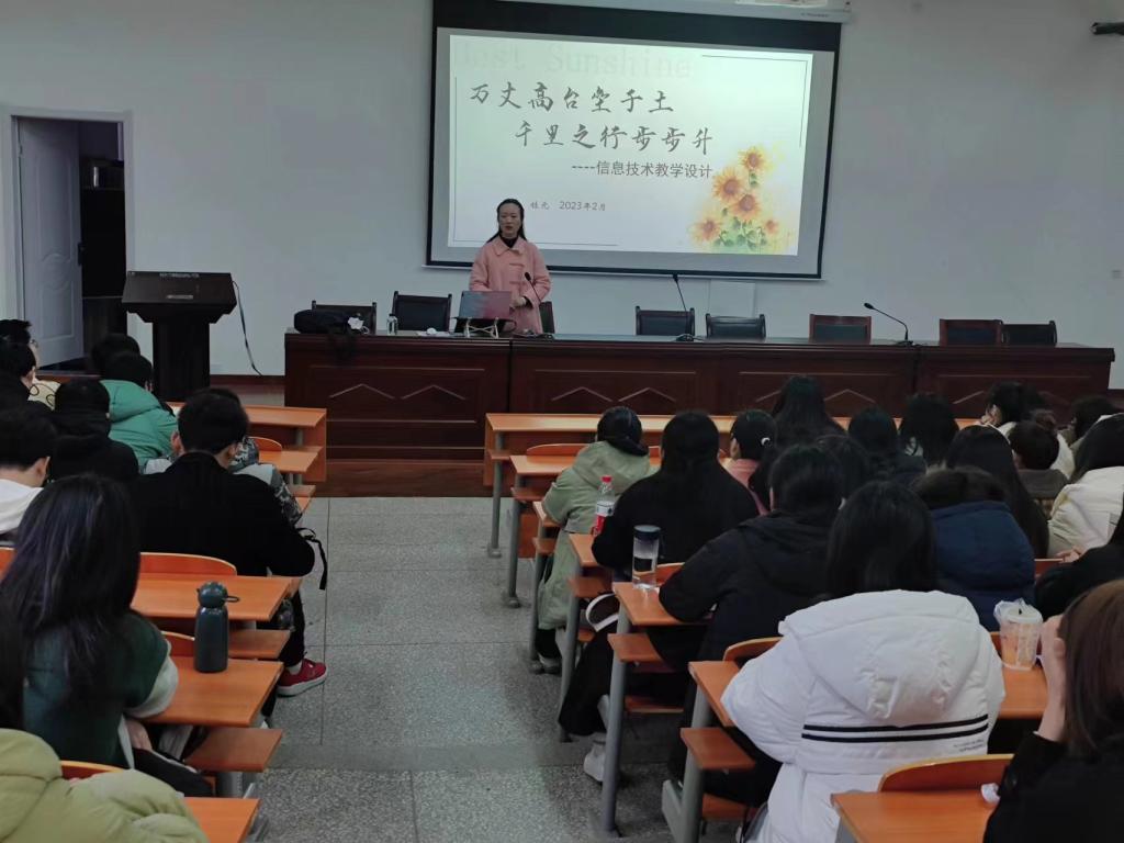 桂元老师主要从2022版《义务教育课程方案》《义务教育信息科技课程标准》概要学习、信息技术课程教学设计方法、如何上好一节优质课、课例研讨等方面向我们展示了中小学信息技术教学设计,桂元老师以自己的比赛和授课经历生动形象地向同学们展现中小学信息技术教学设计的相关细节以及容易出现问题的地方,使我院师生受益良多。