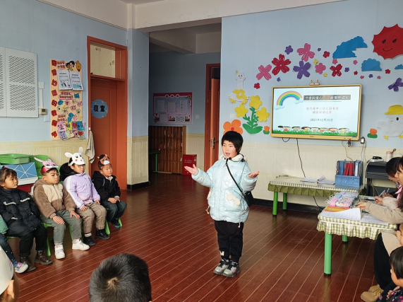 语言与思维有着密切的关系,语言在思维活动中的主要职能是参与形成思维,没有语言思维无法进行,而思维活动的成果,必须用语言表达出来。幼儿思维能力的发展和语言能力的发展是同步进行的,幼儿掌握语言的过程也就是思维发展过程;而思维的发展,又促进语言的构思能力、逻辑能力和语言表达能力的发展。我园于2023年10月组织了全园教师语言领域公开课活动,我在活动中,通过故事表演、问题引导等方式来教学,让孩子们在边玩边学中,发展了语言表达能力,一个个小故事深深印在孩子们的脑海中。