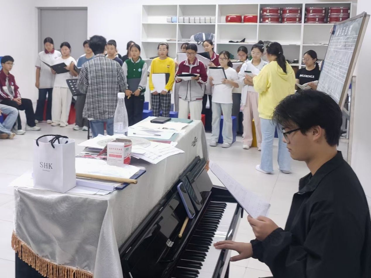 李郝、骆紫腾、裴世阳三位实习老师认真备课、精心施教,并在课外辅导学生备战“庆十一”文艺比赛,展现了高度的职业责任感。同时,三位老师积极参与合唱团训练,帮助提升合唱团整体水平,并在班级管理中与学生建立了亲切的关系,成为学生们信赖的“大哥哥”“大姐姐”。